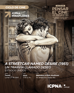Durante 8 lunes consecutivos, del 6 de abril al 25 de mayo, se proyectarán películas representativas del trabajo actoral en distintas épocas y estilos cinematográficos. Al finalizar cada función se realizará un conversatorio con los especialistas del podcast “Mal de ojo”: Ricardo Bedoya y Rodrigo Bedoya.